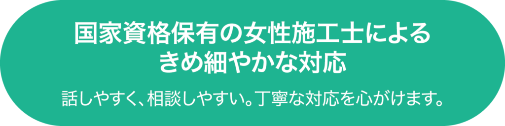 宮崎県全域に対応しております。お問い合わせ内容によりしては九州全域対応いたします。女性スタッフが県内各地へお伺いし、丁寧な施工を提供いたします。